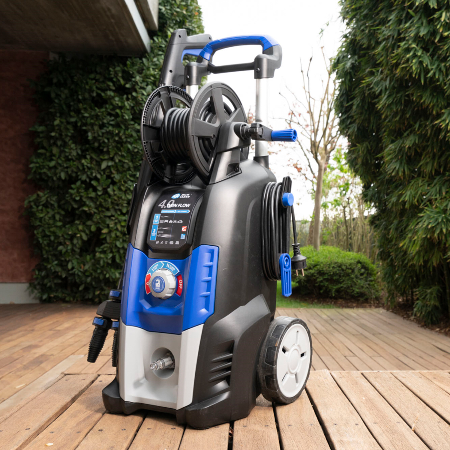 150 Bar High Pressure Washer for medium to stubborn dirt uses with a dual tech system for a variety of applications while choosing the right pressure and flow rate.